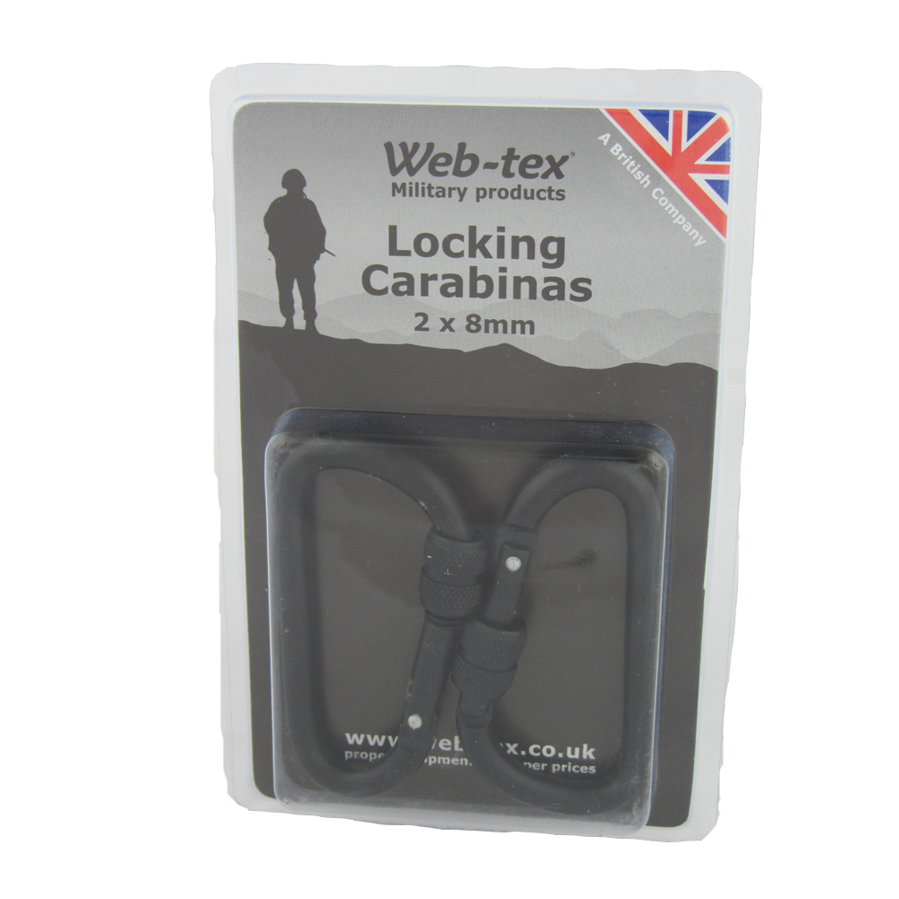 The 8mm carabiners are screw gate locking carabiners.
